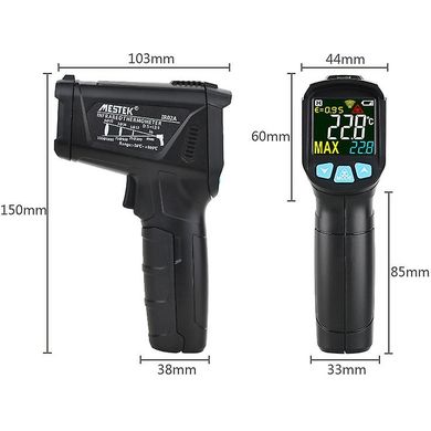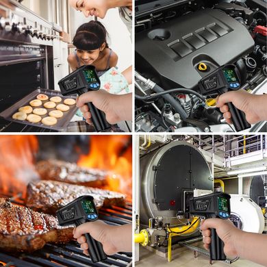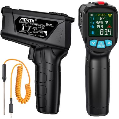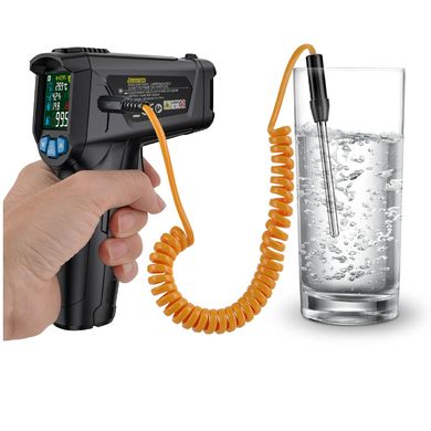 Berührungsloses Infrarot-Thermometer und -Hygrometer mit einem Messbereich von –50°C bis 800℃, 0%~100%RH, 0,1°C Auflösung, Digitalanzeige, Laserzielgerät, zusätzliche Sonde