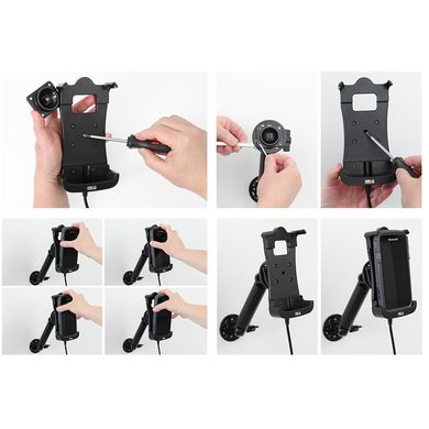 Der Halter ist sehr stabil, das Terminal klebt nicht und vibriert nicht. Die Halterung wird am Brodit ProClip oder an den Brodit Montagefüßen und -armen befestigt.