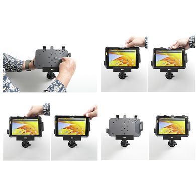 Die Halterung ist sehr stabil, das Tablet bleibt nicht darin hängen und vibriert nicht. Die Halterung wird am Brodit ProClip oder an Brodit-Montagesockeln und -Armen befestigt.