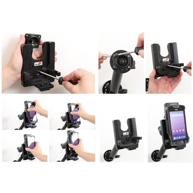 Der Halter ist sehr stabil, das Terminal klebt nicht und vibriert nicht. Die Halterung wird am Brodit ProClip oder an den Brodit Montagefüßen und -armen befestigt.