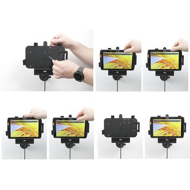 Die Halterung ist sehr stabil, das Tablet bleibt nicht darin hängen und vibriert nicht. Die Halterung wird am Brodit ProClip oder an Brodit-Montagesockeln und -Armen befestigt.