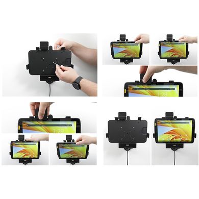 Die Halterung ist sehr stabil, das Tablet bleibt nicht darin hängen und vibriert nicht. Die Halterung wird am Brodit ProClip oder an Brodit-Montagesockeln und -Armen befestigt.