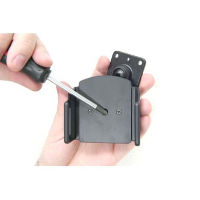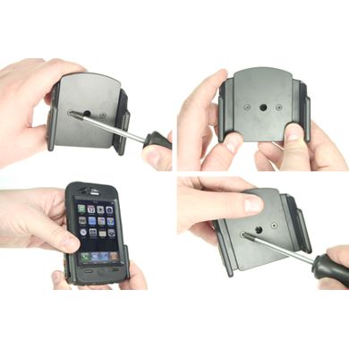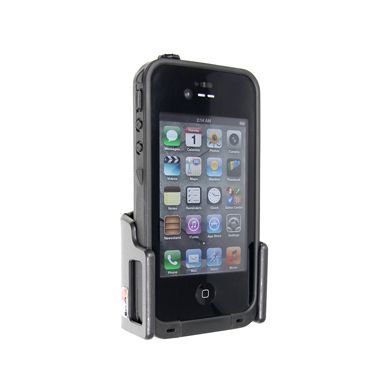 Die Halterung ist sehr stark, das Telefon klopft oder vibriert nicht darin. Die Halterung verfügt über ein Scharnier, dank dem das Telefon jederzeit problemlos horizontal oder vertikal gedreht oder gekippt werden kann. Der Halter wird am Brodit ProClip befestigt.
