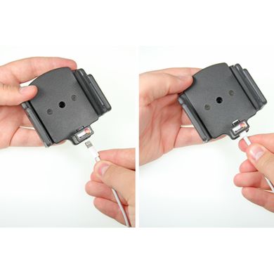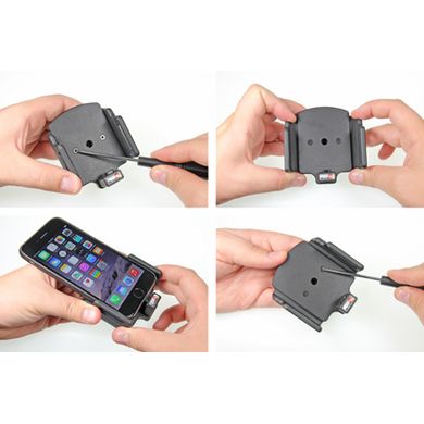 Die Halterung ist sehr stark, das Telefon klopft oder vibriert nicht darin. Die Halterung verfügt über ein Scharnier, dank dem das Telefon jederzeit problemlos horizontal oder vertikal gedreht oder gekippt werden kann. Der Halter wird am Brodit ProClip befestigt.