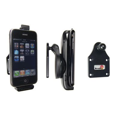 Die Halterung ist sehr stabil, das Telefon bleibt nicht darin hängen und vibriert nicht. Die Halterung verfügt über ein Scharnier, mit dem Sie das Telefon jederzeit leicht ins Hoch- oder Querformat drehen oder neigen können. Der Halter wird am Brodit ProClip befestigt.