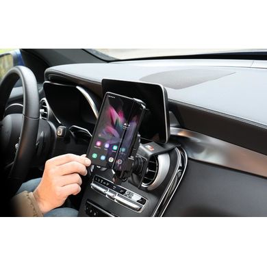 Die Halterung ist sehr stark, das Telefon klopft oder vibriert nicht darin. Die Halterung verfügt über ein Scharnier, dank dem das Telefon jederzeit problemlos horizontal oder vertikal gedreht oder gekippt werden kann. Der Halter wird am Brodit ProClip befestigt.