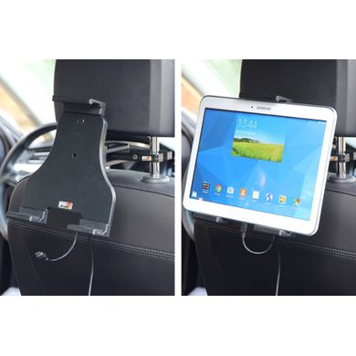 Universeller Tablet-Halter für Autos von 180 bis 230 mm Breite mit versteckter USB-C-Ladestation. Montage auf dem Armaturenbrett durch den Kauf eines kundenspezifischen ProClips.