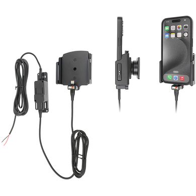 Die Halterung ist sehr stabil, das Telefon bleibt nicht darin hängen und vibriert nicht. Die Halterung verfügt über ein Scharnier, mit dem das Telefon jederzeit leicht in das Quer- oder Hochformat gedreht oder gekippt werden kann. Der Halter wird am Brodit ProClip befestigt.