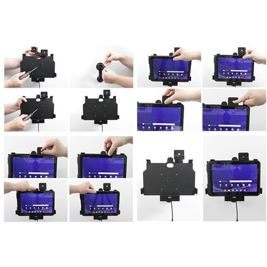 Die Halterung ist sehr stabil, das Tablet bleibt nicht darin hängen und vibriert nicht. Die Halterung verfügt über ein Scharnier, mit dem das Tablet jederzeit ins Hoch- oder Querformat gedreht oder gekippt werden kann. Die Halterung wird am Brodit ProClip oder an den Brodit Montagefüßen und -armen befestigt.