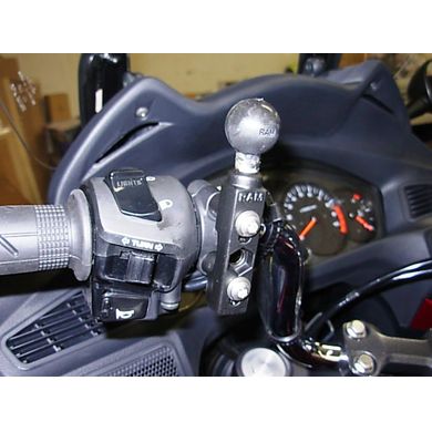 RAM-Halterung für Motorrad oder Roller am linken oder rechten Brems- und Kupplungshebel. Die Abstände der Löcher müssen zwischen 23,9 und 40 mm liegen. Der patentierte 1-Zoll-Kugelbolzen besteht aus hochwertigem Gummi, um Stöße und Vibrationen zu dämpfen, die sonst auf das angeschlossene elektronische Gerät übertragen würden.
