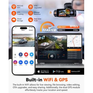 Vantrue N2X: 2.7K + 1080P Aufnahme, 5 GHz Wi-Fi, GPS, Sprachsteuerung,