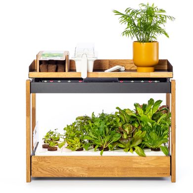 Für 25 Setzlinge, Bluetooth, App, LED-Lampen 2×16W, automatische Bewässerung, Tankvolumen 9000 ml, aus Eichenholz, 54 Setzlinge pro Packung