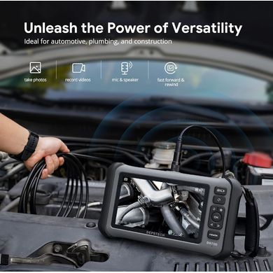 Dies ist besonders nützlich, wenn der Bereich komplex ist oder aus mehreren Blickwinkeln untersucht werden muss. Ein hochmoderner 2,0-Megapixel-CMOS-Bildsensor mit Bluart 3.0-Bildprozessor liefert erstaunlich detaillierte Bilder. Die Haupt- und die Seitenkamera können unabhängig voneinander oder gleichzeitig verwendet werden, wobei jede über eine eigene Beleuchtung verfügt, um auch die dunkelsten Bereiche auszuleuchten. Im Split-Screen-Modus können Sie verschiedene Ansichten nebeneinander vergleichen und so Unstimmigkeiten oder Probleme leicht erkennen. Auch die Audioqualität und die Aufnahmefunktionen sind hervorragend. Das integrierte Mikrofon und der Lautsprecher ermöglichen eine nahtlose Audioaufnahme und -wiedergabe.