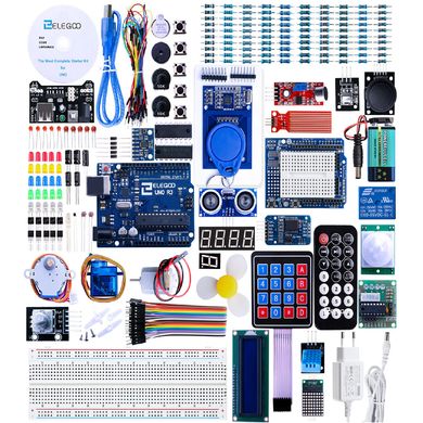 Starterkit, 200 Bauteile, 63 Arten von elektronischen Bauteilen, Arduino Official IDE und ElegooKit-Programmiersoftware, USB-Anschluss, geeignet ab 10 Jahren