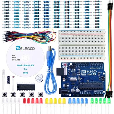 Das UNO Basic Starter Kit von Elegoo ist ein Basis-Einsteigerset, das alle wichtigen Komponenten enthält, die für den Einstieg in die Welt des Mikrocontrollings benötigt werden. Es ist das günstigste und grundlegendste Set elektronischer Komponenten für Arduino-Anfänger. Arduino ist eine Open-Source-Plattform zur Erstellung elektronischer Projekte und besteht aus einer physischen programmierbaren Leiterplatte (oft als Mikrocontroller bezeichnet) und einer Software bzw. IDE (Integrated Development Environment), die auf dem Computer läuft und zum Schreiben und Hochladen von Computercode auf die physische Platine dient. Das Paket enthält das neueste Elegoo UNO R3 Controller-Board (100 % kompatibel mit Arduino UNO R3, MEGA 2560 UNO R3, NANO, Arduino-Kit) mit USB-Kabel und allen grundlegenden Komponenten, alles verpackt in einer schönen Box mit einer übersichtlichen Komponentenliste und einer CD, auf der Sie eine kostenlose PDF-Anleitung inklusive einer Projekteinführung und dem benötigten Code finden, mit dem Sie viel Zeit sparen. Ideales Geschenk für alle angehenden Erfinder ab 10 Jahren.