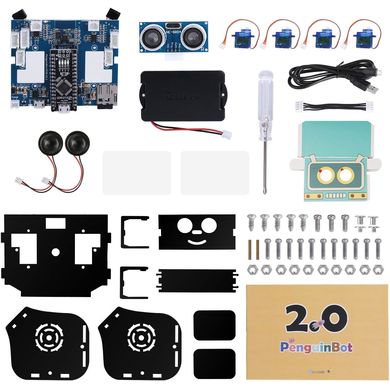 Der Penguin Bot von Elegoo ist ein lustiger und lehrreicher Robotik-Bausatz, der auf der Arduino-Plattform und der Arduino Nano-Steuerplatine basiert. Der Roboter erlaubt seinen Erbauern eine Vielzahl von DIY (Do-It-Yourself) Modifikationen, wie z.B. das Austauschen der Masken auf dem Kopf, und kann bei Bedarf auch umprogrammiert werden. Penguin Bot ist nicht nur ein reines Spaßprojekt für erfahrene Bastler, sondern auch ein ideales Werkzeug, um Kinder ab 10Jahren in die Welt der Elektronik und Programmierung einzuführen. Der Bausatz wird in einer schönen und stabilen Verpackung geliefert, die alle notwendigen Werkzeuge und Teile für den Zusammenbau des Roboters enthält (Magnetschraubenzieher, Servomotoren und Ersatzschrauben). Jedes Teil ist in einem sicheren Zip-Lock-Beutel verpackt. Um den Roboter noch niedlicher zu machen, sind sechs schöne Kopfmasken enthalten, die du nach Belieben austauschen oder mit deinem Lieblingsdesign verzieren kannst. Dank derintegrierten TF-Karte kannst du ganz einfach Musik aufnehmen und abspielen.