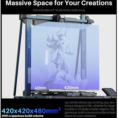 3D-Drucker FDM, Druckfläche 420mm×420mm×480mm, Druckmaterial 1,75mm ABS, PETG, PLA und TPU, Druckgeschwindigkeit 500mm/s, Touchscreen, Druckoption: WLAN