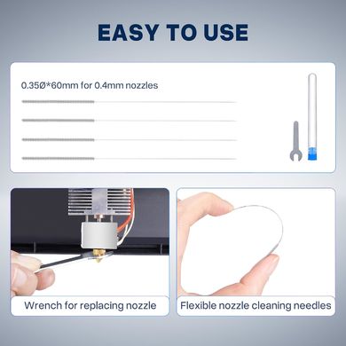 Eine einfache Identifizierung der Düsengröße wird durch die Größenmarkierung direkt auf der Oberfläche jeder Düse ermöglicht. Dadurch können Sie leicht die gewünschte Größe für Ihre Druckaufgabe wählen. Nach dem Düsenwechsel ist es jedoch wichtig, den Abstand zwischen Düse und Druckbett neu zu kalibrieren, um eine optimale Qualität der gedruckten Teile zu gewährleisten. Regelmäßige Reinigung und Wartung der Messingdüsen hilft, Verstopfungsprobleme zu vermeiden und eine konsistente Druckqualität zu gewährleisten. Zu diesem Zweck sind im Set praktische Reinigungsnadeln enthalten, die die Wartung erleichtern und die Lebensdauer der Düsen verlängern. Mit Düsenabmessungen von nur 13 mm x 5 mm und einem geringen Gewicht ist das Elegoo 26 Pcs 0.4mm MK8 Messingdüsen-Set kompakt und leicht zu verstauen. Das Zubehör wird in einer praktischen Verpackung geliefert, die 26 Messingdüsen mit einem Durchmesser von 0,4 mm in eleganter Goldfarbe, 1 Düsenschlüssel und 4 Reinigungsnadeln enthält. Bei der Verwendung dieses Sets ist es wichtig, auf Sicherheit zu achten und die Düsen außerhalb der Reichweite von Kindern aufzubewahren.