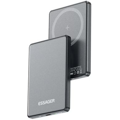 Essager 5000mAh magnetische kabellose Powerbank, 5–15W Leistung, ultra-kompakte 20mm, Typ-C Eingang/Ausgang, Aluminiumlegierung, 180g, titangrau.