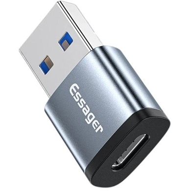 OTG-Konverter Essager Typ-C weiblich auf USB 3.0 männlich, 5Gbps Geschwindigkeit, 3A Laden, Aluminiumlegierung, 16.4×8.7×16.5mm, mit Tasche.