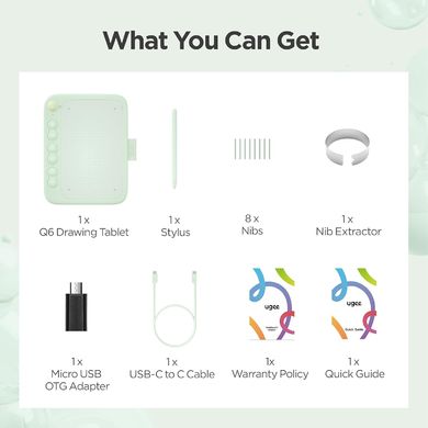 Das Ugee Q6 Grafiktablett ist die ultimative Lösung für Kreativprofis, Künstler und Enthusiasten, die in jeder Umgebung und zu jeder Zeit flexibel arbeiten möchten. Mit einer kompakten Größe, die einem A5-Papier entspricht, und einem geringen Gewicht (nur 249 g) ist das Q6 das perfekte tragbare Werkzeug für die Kreativität unterwegs. Das Tablet ist mit den gängigsten Betriebssystemen kompatibel und kann mit Smartphones und Laptops verbunden werden, was das Zeichnen, Bearbeiten von Fotos oder das Anfertigen von Notizen in virtuellen Meetings erleichtert. Erforschen Sie seine Funktionen und entfesseln Sie Ihre Kreativität. Das Q6 verfügt über ein schlankes, modernes Design, das durch einen integrierten USB-C-Anschluss und ein diskretes, abnehmbares Kabel ergänzt wird, das eine nahtlose Verbindung zu einer Vielzahl von Geräten gewährleistet und Ihnen ein ungestörtes Arbeiten in jeder Umgebung ermöglicht.