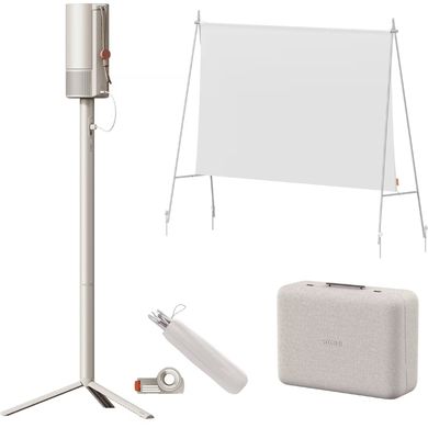 Im Gegensatz zur Basisversion enthält die XGIMI MoGo 3 Pro 4in1-Version auch einelimitierte Weihnachtshülle, einen kreativen optischen Filter, eine spezielle Linse und einen PowerBase-Ständer, der sowohl ein Bodenständer als auch eine Powerbank ist. Der Ständer enthält einen 20000mAh-Akku und ermöglicht es Ihnen, den MoGo 3 Pro ganz einfach mit Strom zu versorgen. Das kann sehr praktisch sein, wenn Sie den Projektor oft mitnehmen. Der Ständer ist jedoch nicht für die Verwendung im Freien geeignet, aber wenn Sie den Projektor zu Hause oder im Büro verwenden möchten und eine integrierte Lösung benötigen, die ohne Kabelverbindung funktioniert, ist er eine praktische Option, die nur als Teil des 2in1-, 3in1– und 4in1-Pakets erhältlich ist.
