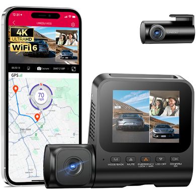 Drei-Kanal-Dashcammit einer 4K-UHD-Frontkamera und zwei zusätzlichen