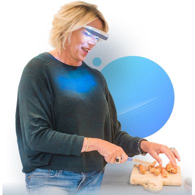 Die Luminette-Lichtbrille strahlt weißes Licht aus, das mit blauem Licht bei