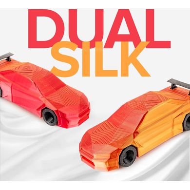 Zweifarbiges PLA-Filament mit seidigem Glanz und wechselnder Farbe je nach Betrachtungswinkel. Leicht zu bedrucken, umweltfreundliche Spule. 1,75 mm, 1 kg.