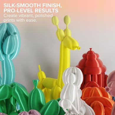 PLA-Filament mit seidig glänzender Oberfläche. Verbesserte Anti-Fragilitätsformel, Druckgeschwindigkeit bis zu 250 mm/s. 1,75 mm, 1 kg, 24 Farben, umweltfreundliche Spule.