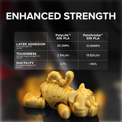 Polymaker Panchroma PLA Silk stellt einen bedeutenden technologischen Fortschritt im Bereich der 3D-Druck-Filamente dar und kombiniert ästhetische Exzellenz mit außergewöhnlichen funktionalen Eigenschaften. Das Material ist das Ergebnis des innovativen Ansatzes von Polymaker bei der Entwicklung von Verbrauchsmaterialien, mit dem Ziel, ein Filament zu schaffen, das gewöhnliche 3D-Drucke in Luxusobjekte mit einer seidig glänzenden Oberfläche verwandelt, die an professionell lackierte Produkte erinnert. Die verbesserte Seiden-PLA-Formulierung behebt die langjährigen Probleme der Sprödigkeit und Düsenverstopfung, die frühere Generationen von Glanzfilamenten kennzeichneten, und sorgt gleichzeitig für eine außergewöhnlich glatte und lebendige Oberfläche, die den Drucken ein hochwertiges Aussehen verleiht. Die Entwicklung dieser Formulierung erforderte mehrere Jahre intensiver Forschung, in denen Hunderte von verschiedenen Kombinationen von Polymeren, Additiven und Verarbeitungstechniken getestet wurden, bevor die optimale Formulierung gefunden wurde, die alle erforderlichen Parameter erfüllt. Die revolutionäre Eigenschaft dieses Materials liegt in erster Linie in seiner Fähigkeit, selbst bei hohen Druckgeschwindigkeiten von bis zu 150 mm/s einen satten Seidenglanz beizubehalten – eine bahnbrechende Lösung für das Mattierungsproblem, das bei seidenen PLA-Filamenten im Hochgeschwindigkeitsdruck häufig auftritt.