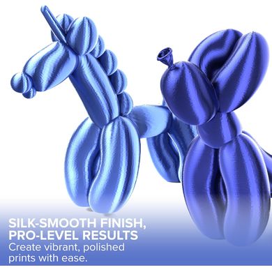 PLA-Filament mit seidig glänzender Oberfläche. Verbesserte Anti-Fragilitätsformel, Druckgeschwindigkeit bis zu 250 mm/s. 1,75 mm, 1 kg, 24 Farben, umweltfreundliche Spule.