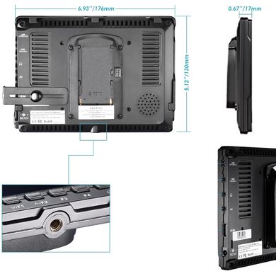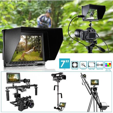 Dieser Vorschaumonitor ist für DSLR-Kameras SONY A7S II, A6500, Panasonic GH5, Canon 5D Mark IV und weitere Fotoapparate und Kameras mit HDMI-Videoausgang geeignet. Er kann mit F550, F570, F750, F770, F950, F970 Batterien oder einem 12V-Netzadapter betrieben werden (Batterien und Adapter sind nicht im Lieferumfang enthalten). Die Befestigung des Monitors ist dank des Stativgewindes entweder auf einem Stativ möglich, oder er kann mithilfe des mitgelieferten Gelenks auf den Blitzschuh (Hot Shoe) der Kamera geschoben werden.