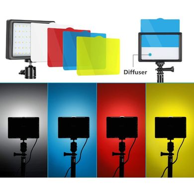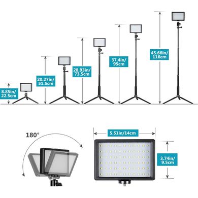 Die Beleuchtung von Neewer ist die ideale Wahl für neue oder fortgeschrittene Fotografen und Videofilmer. Die Leuchte besteht aus zwei Paneelen auf einem Stativ, jedes Paneel hat 66 einzelne SMD-LEDs. Dank der möglichen Leistungsdimmung können Sie das Potenzial dieser LEDs voll ausschöpfen – es liegt also an Ihnen, wie stark Sie die Szene beleuchten müssen. Der Einstellbereich beträgt 10–100%. Das Licht wird dank der austauschbaren Filter, die die Farbeigenschaften des ausgestrahlten Lichts anpassen, perfektioniert. Mit einer Lichtleistung von bis zu 1000 Lumen können Sie auch in den dunkelsten Szenen fotografieren. Dank des USB-Kabelanschlusses können Sie ein Handy-Ladegerät oder sogar eine leistungsstärkere Powerbank zur Stromversorgung verwenden.