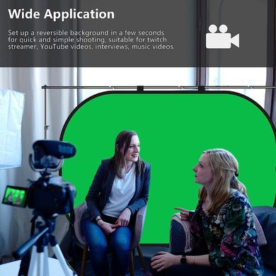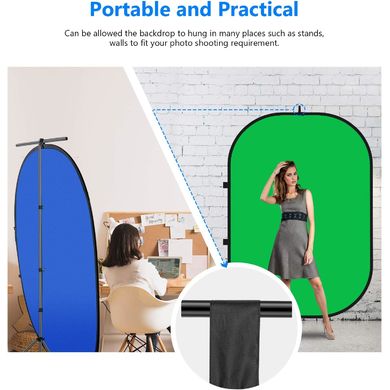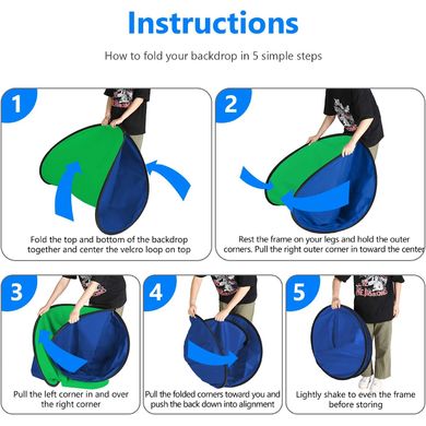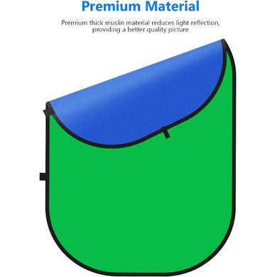 Umkehrbarer Falthintergrund mit fabelhaftem 2in1-Design: leuchtendes Blau auf einer Seite und Grün auf der anderen. Verabschieden Sie sich vom lästigen Mitführen eines einzigen blauen oder grünen Hintergrunds und geben Sie sich die Freiheit, jederzeit und überall zu wählen, welche Farbe Sie für Ihre Aufnahmen benötigen. Blaue Hintergründe eignen sich für Porträt- und Produktfotografie, Animationen, Nachrichteninterviews, TV- und andere Videoaufnahmen. Er kann auch als Hintergrund für Porträts, Produkte, Passfotos usw. verwendet werden. Grün ist die am häufigsten verwendete Farbe für Chroma Keying, da sie das Gegenteil unserer natürlichen Haut- und Haarfarbe ist. In dieser Hinsicht wird Grün gegenüber Blau bevorzugt, weil die heutigen Videokameras am empfindlichsten auf Grün reagieren und den saubersten Keying-Effekt liefern. Der Hintergrund besteht aus einem hochwertigen, superstarken Musselinfasermaterial mit hervorragender Haltbarkeit, das dieLichtreflexion reduziert und eine bessere Bildqualität ermöglicht.