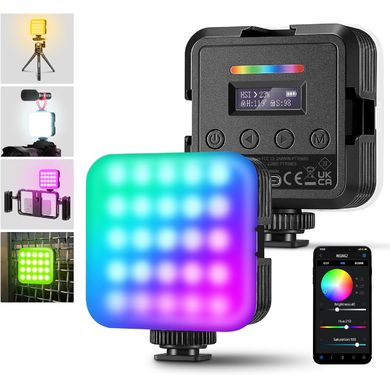 RGB62-Fotolicht, 18× warmweiß + 18× kaltweiß + 25 RGB-LEDs, Beleuchtungsstärke 800 Lux/ 0,5m, Farbwiedergabe-Index und Lichtqualität CRI 97+