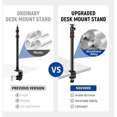 Neewer TL283 Teleskop-Tischspannarm, 120° Neigung des Spannkopfes, 360° Drehung, 43–102cm, max. Tischplattenstärke 5cm, Belastbarkeit 3 kg