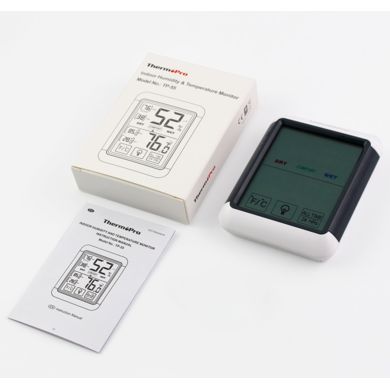 Das Digitalthermometer ThermoPro TP55 ist ein kompaktes Gerät (8,5 × 11 × 2,2 cm), das einenÜberblick über die aktuelle Temperatur und Luftfeuchtigkeit im Raum bietet. Ausgestattet mit professionellen Sensoren liefert es genaue Messungen und zeigt die Messwerte auf einem 4-Zoll-Monochrom-Touchscreen mit Hintergrundbeleuchtung an, der auch bei schlechten Lichtverhältnissen gut ablesbar ist. Mit einem Temperaturbereich von –50 bis 70°C und einer Luftfeuchtigkeit von 10 bis 99% zeigt diese Wetterstation auch Symbole für hohe Luftfeuchtigkeit oder zu trockene Raumluft an. Sie wird mit zwei mitgelieferten AAA-Batterien betrieben und kann an die Wand gehängt oder als Ständer aufgestellt werden.