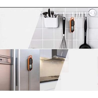Dank des Magneten auf der Rückseite des Thermometers kann es an Metalloberflächen befestigt werden oder dank der Öse an einem Haken aufgehängt werden.