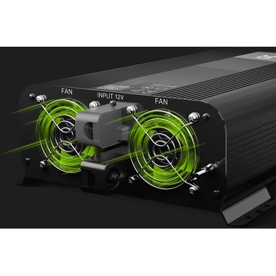 Wechselrichter von 12V auf 230V, Ausgang 2 Steckdosen 220V und USB-A, Leistung 2000W, kurzzeitig bis zu 4000W, 2 Lüfter, reine Sinuswelle