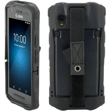 Die Schutzhülle ist mit Zebra-Produkten kompatibel. Auf der Rückseite befindet sich ein Gurt aus strapazierfähigem Stoff für einen bequemen Halt.