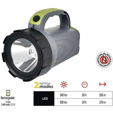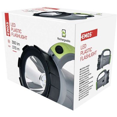 LED-Akku-Taschenlampe EMOS P2311 mit 300 lm und 370 m Reichweite. Zwei