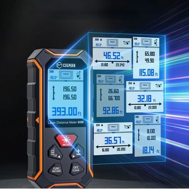 Vergessen Sie das komplizierte und ungenaue Band. Mit dem doppelseitigen Laser-Entfernungsmesser CIGMAN CD-60R können Sie Entfernungen schnell und genau messen, ohne das Gerät ständig bewegen zu müssen. Mit der Möglichkeit, zwischenunidirektionaler und bidirektionaler Messung zu wechseln, können Sie bis zu 120 Meter mit einer Genauigkeit von ±2 mm erreichen. Das bedeutet zuverlässige Ergebnisse für jede Aufgabe – ob im Baugewerbe, in der Innenarchitektur oder bei technischen Projekten.