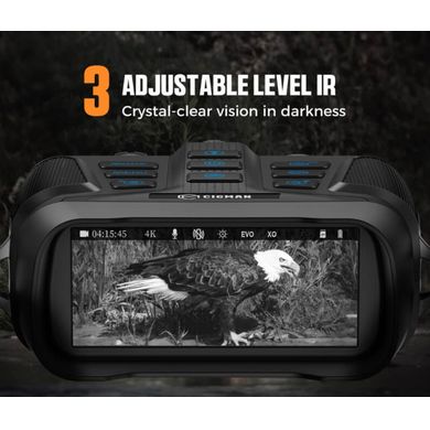 Mit dem digitalen Nachtsicht-Fernglas CIGMAN CNV01 können Sie die Welt um sich herum auch unter Bedingungen beobachten, die für das menschliche Auge nicht möglich sind. Dank desSternenlichtsensors können Sie weit entfernte Objekte auch ohne eingeschalteten Infrarotstrahler und bei schlechten Lichtverhältnissen verfolgen. Sobald völlige Dunkelheit eintritt, schaltet sich der leistungsstarke 3-W-Infrarotstrahler mit 850 nm ein und liefert Ihnen ein klares Bild aus bis zu600 Metern Entfernung. All dies macht dieses Gerät zu einem großartigen Begleiter bei der Jagd, beim Camping, beim Wandern und zu Sicherheitszwecken.