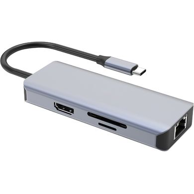 6-in-1-Hub im robusten Design, USB 3.0, HDMI, RJ45, SD, microSD, aus Aluminium, max. USB-Geschwindigkeit: bis zu 5 Gbps, Plug & Play
