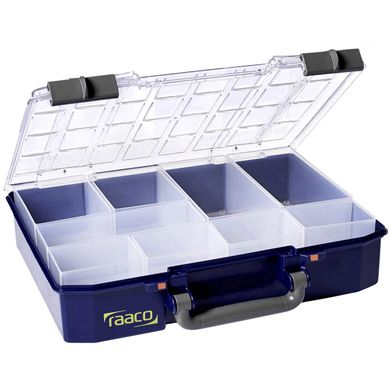 Die Box enthält 9 herausnehmbare Fächer unterschiedlicher Art (4× BA8–1, 1× BA8–2, 2× BA7–1 und 2× CA7–1½). Von Schrauben und Nägeln bis hin zu kleinen Werkzeugen können Sie alles ganz einfach an Ihre Bedürfnisse anpassen. Der transparente Polycarbonat-Deckelgibt Ihnen außerdem einen sofortigen Überblick über den Inhalt.