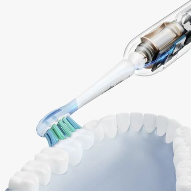 Die Zahnbürste unterteilt Ihren Mund in vier Zonen und zeigt Ihnen mithilfe einer Lichtanzeige an, welcher Bereich noch gereinigt werden muss – der nicht gereinigte Teil Ihres Mundes leuchtet rot. Ein integrierter Timer fordert Sie außerdem auf,alle 30 Sekunden den Bereich zu wechseln, und nach zwei Minuten macht Sie eine sanfte Vibration auf das Ende der empfohlenen Putzzeit aufmerksam. Ein Drucksensor schützt Sie vor zu starkem Druck, der Ihr Zahnfleisch schädigen könnte.