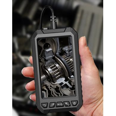 Das Endoskop kann ohne zusätzliche Ausrüstung verwendet werden. Der eingebaute5"-Bildschirm mit einer Auflösung von 1280×720pbietet einen optimalen Sichtbereich. Die Kamera ist wasserdicht und erfüllt die IP67-Norm. Aufgrund des Sondendurchmessersvon 5,5 mm eignet sie sich für sehr kleine Löcher, wie z. B. das Zündkerzenloch in einem Motor.