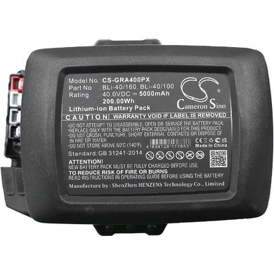 Akku für Gardena Powercut Li40/30 / Powermax Li-40/37 / Li-40/41 und andere, äquivalent. BLI-40/100, 40V, 5 Ah, Li-Ion, Hersteller: Cameron Sino Technology