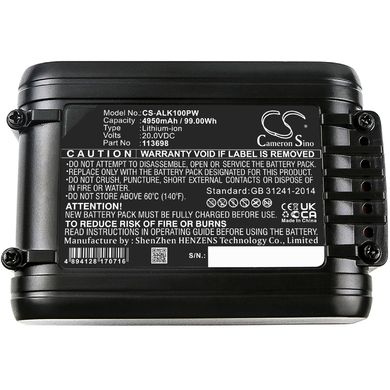 Akku für Rasenmäher AL-KO Easy Flex Csa 2020 / Gt2025 / Ht 2050 / Wr 2000, und weitere, entspr. B100, 20V, 4.95Ah, Li-Ion, Hersteller: Cameron Sino Technology